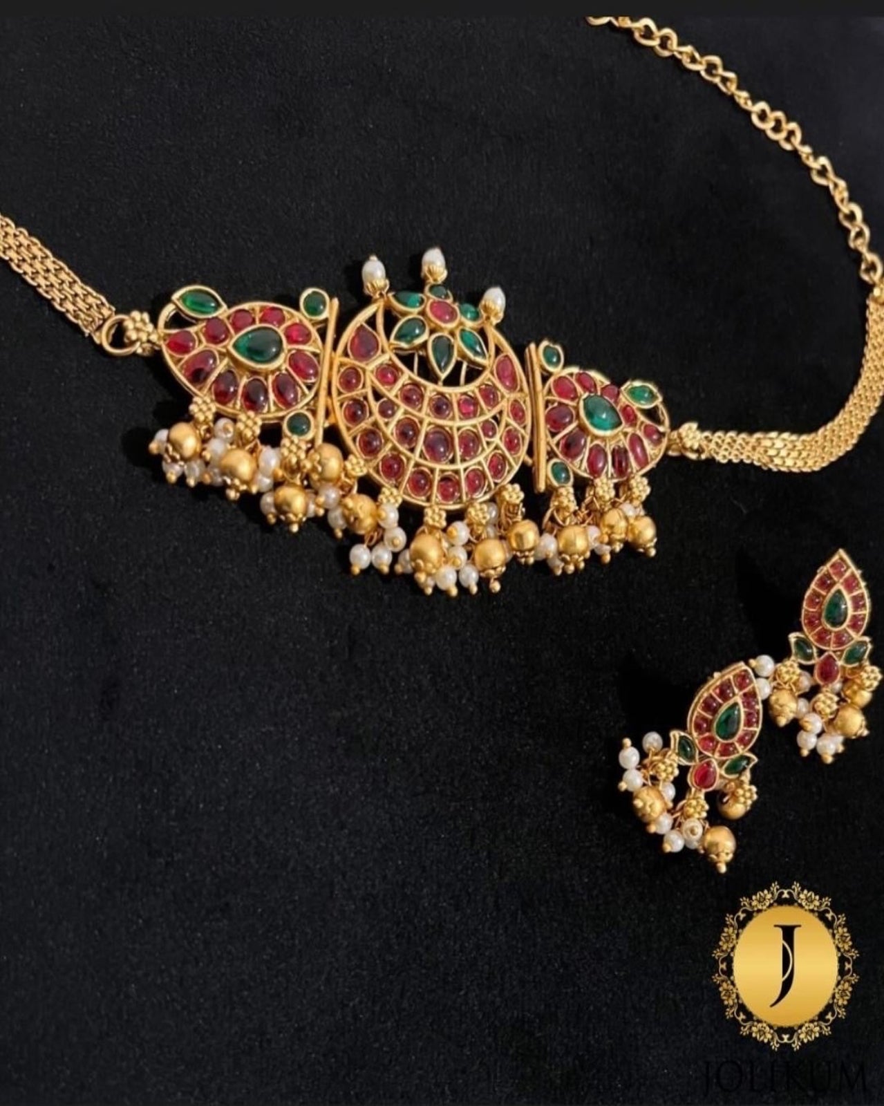 Elevate your ethnic look with our Matte Gold Finished Choker Set — a perfect blend of subtle elegance and timeless charm. Crafted with a soft, brushed matte gold finish, this choker set exudes understated luxury. The intricate detailing, inspired by traditional Indian motifs, adds depth and richness to its minimalist design. Paired with matching earrings, it’s the ideal accessory for weddings, festive gatherings, or elegant evening wear. Versatile and graceful, this set complements both classic and contemporary ensembles with effortless ease.